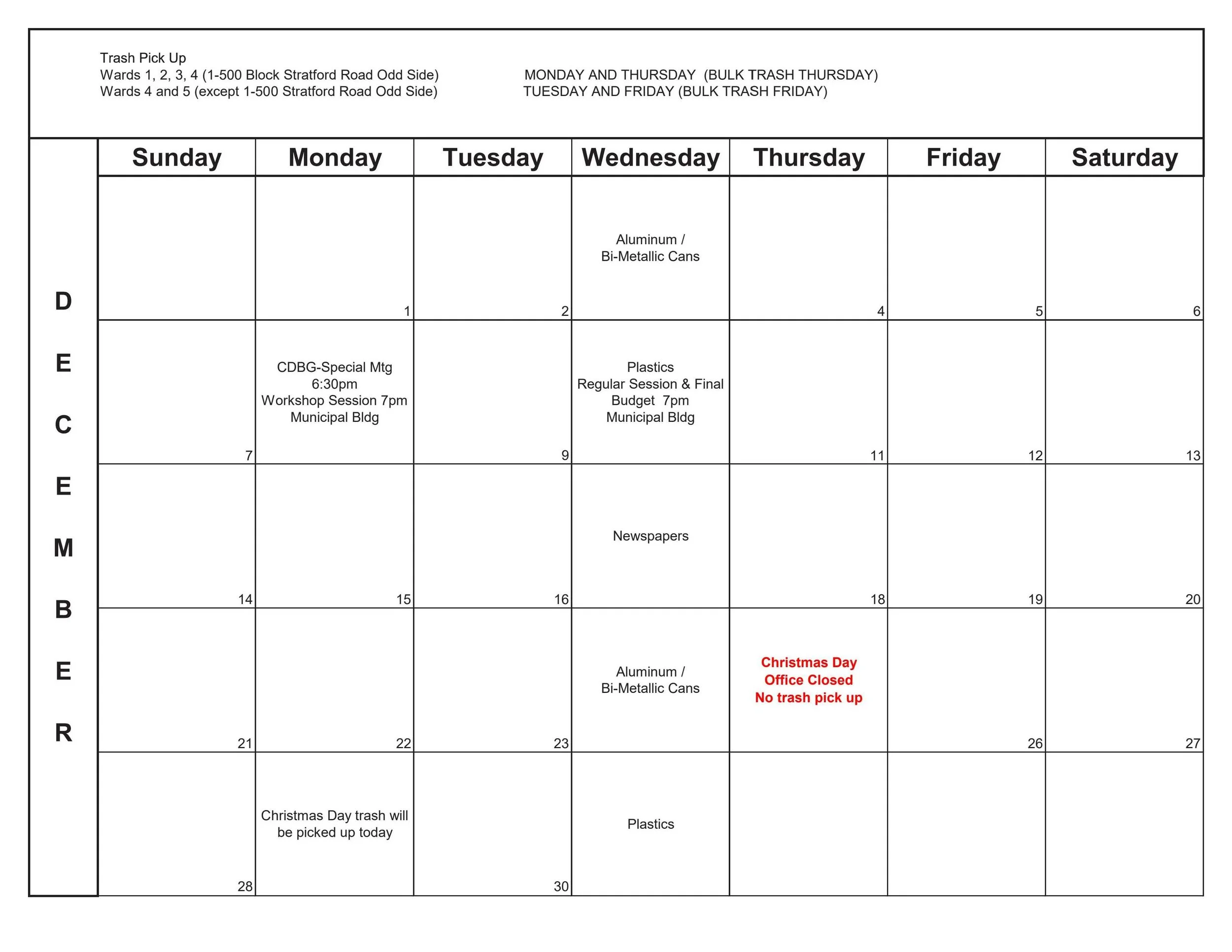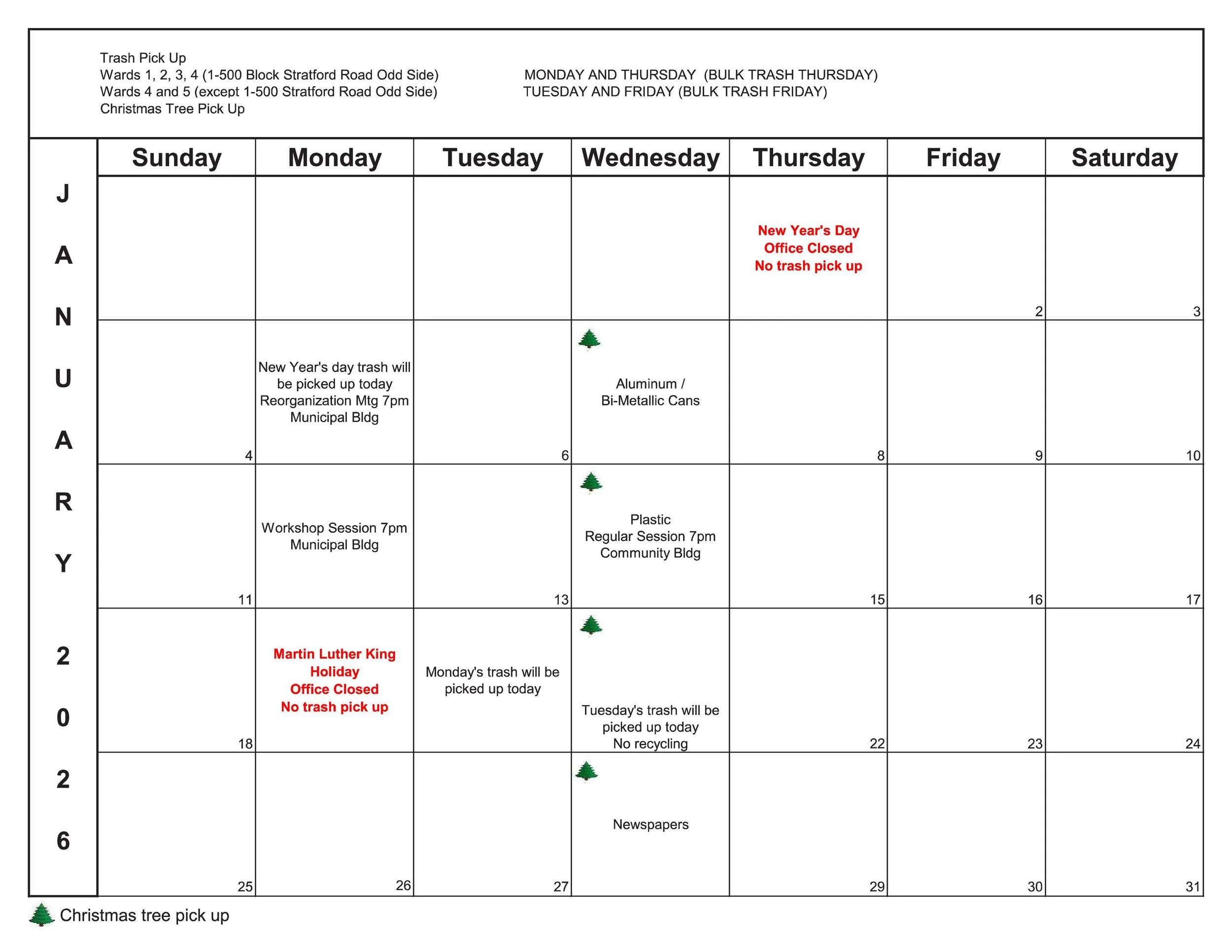 Building material, automobile parts and truck and auto tires will not be picked up.